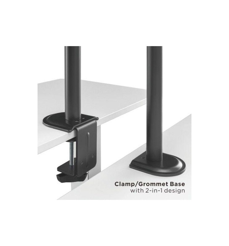 Altura y posición ajustables: los brazos articulados permiten girar, inclinar y elevar cada dispositivo de forma independiente.